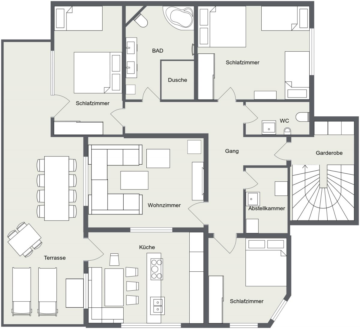 Das äußerst komfortable 120m² große Apartment im Haus besticht durch das großzügige Platz- und Schlafangebot.